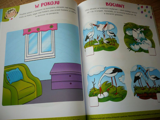 Są to bardzo grube (liczące po 128 stron!) książeczki dla dzieci w wieku przedszkolnym, idealnie dostosowane do ich możliwości. Znajdziecie tutaj mnóstwo bardzo zróżnicowanych zadań. Wśród ćwiczeń jest praktycznie wszystko- szlaczki, łączenie elementów, labirynty, kolorowanki, historyjki obrazkowe i mnóstwo innych, przy czym warto zaznaczyć, że kolorowanek jest niewiele, a nie pół książki jak to się czasami zdarza w takich publikacjach.