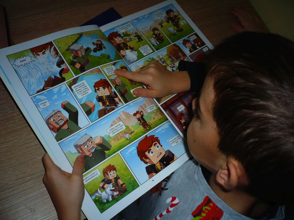 Rodzice dzieci, które czytają już samodzielnie często zastanawiają się, czy warto swoim pociechom proponować komiksy. Na swoim przykładzie mogę Wam powiedzieć, że zdecydowanie tak. To właśnie przy pomocy komiksów Filip zobaczył, jak ciekawą rozrywką jest samodzielne czytanie. Przekonał się, że to nie jest trudne i może sprawiać wiele przyjemności. Teraz czyta już konkretne książki (z własnej nieprzymuszonej woli!), ale od czasu do czasu lubi też sięgnąć po komiks, najchętniej o tematyce związanej z minecraftem.